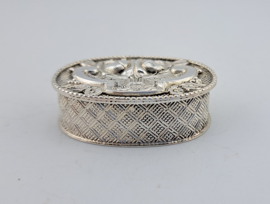 Antiek pillendoosje, zilver, mt; Eldik, Zutphen, jaar 1920.