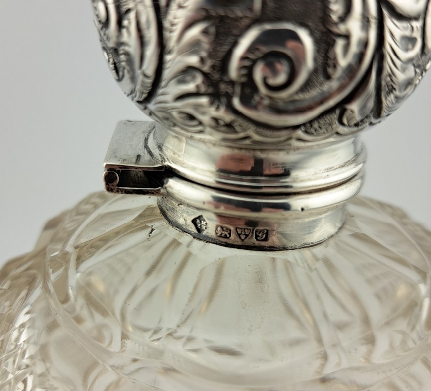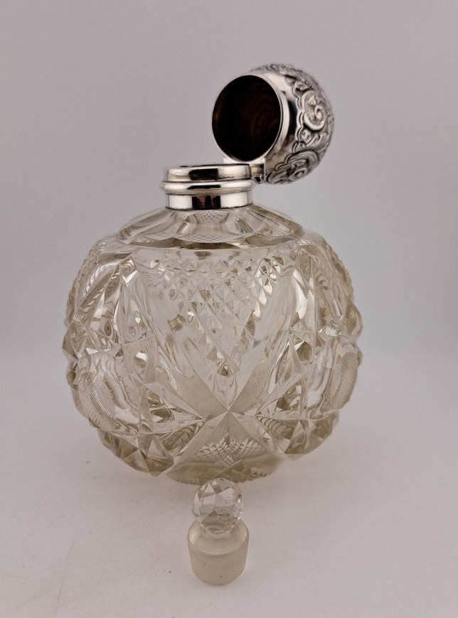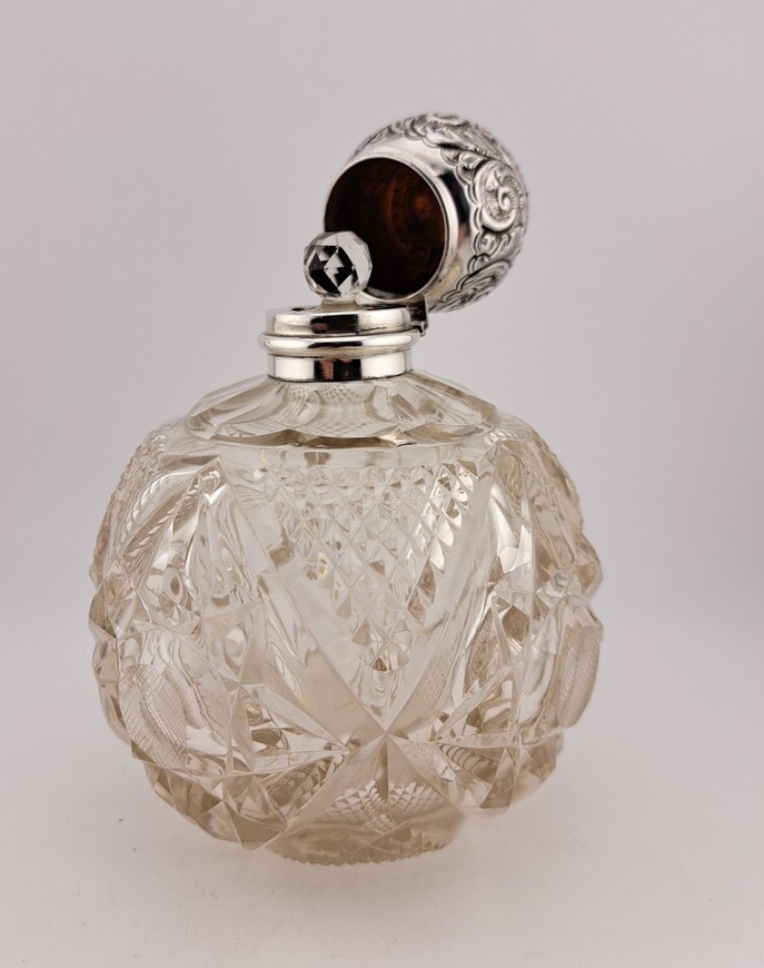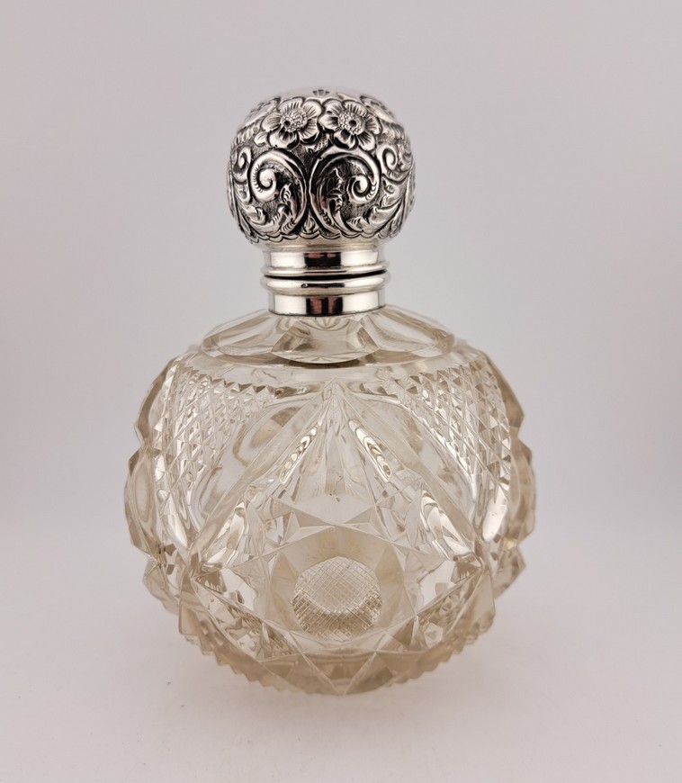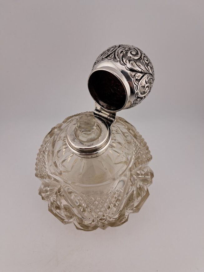 Antieke parfumfles, kristal met zilver, Chester, jaar 1907. Maker; Richard Martin & Ebenezer Hall.