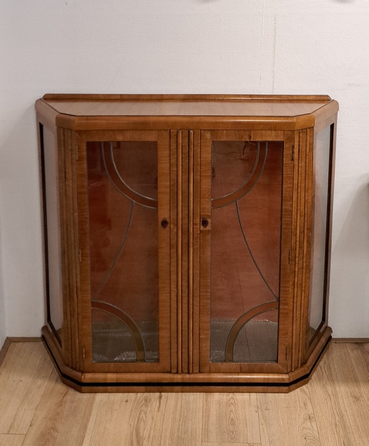 Vitrinekast , notenhout, Art Deco, deurtjes met glas-in-lood, ca.1930. Heeft 2 glazen legplanken.