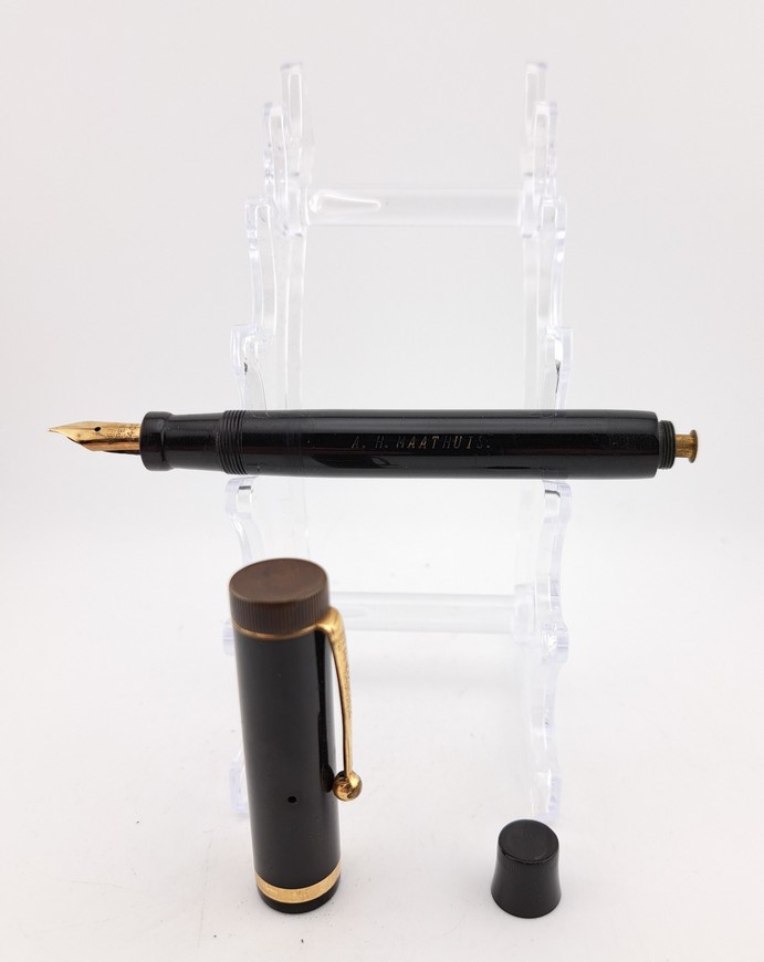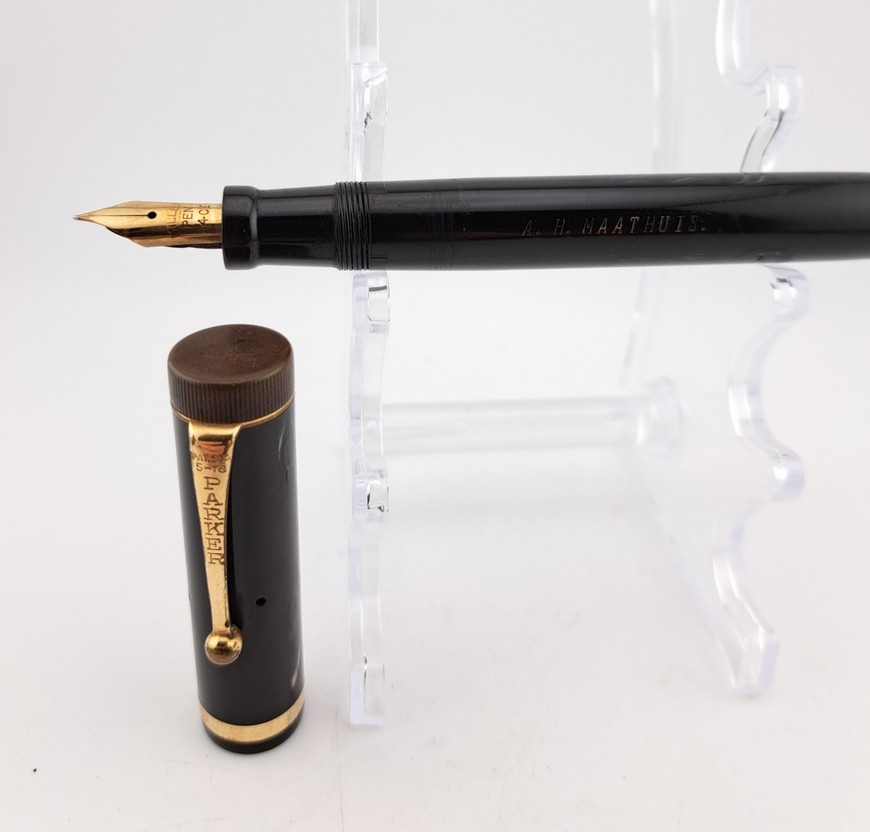 Vulpen, Parker Duofold – Lucky Curve – 14k gouden NIB, ca.1930. Er staat een inscriptie op de pen, zie foto.