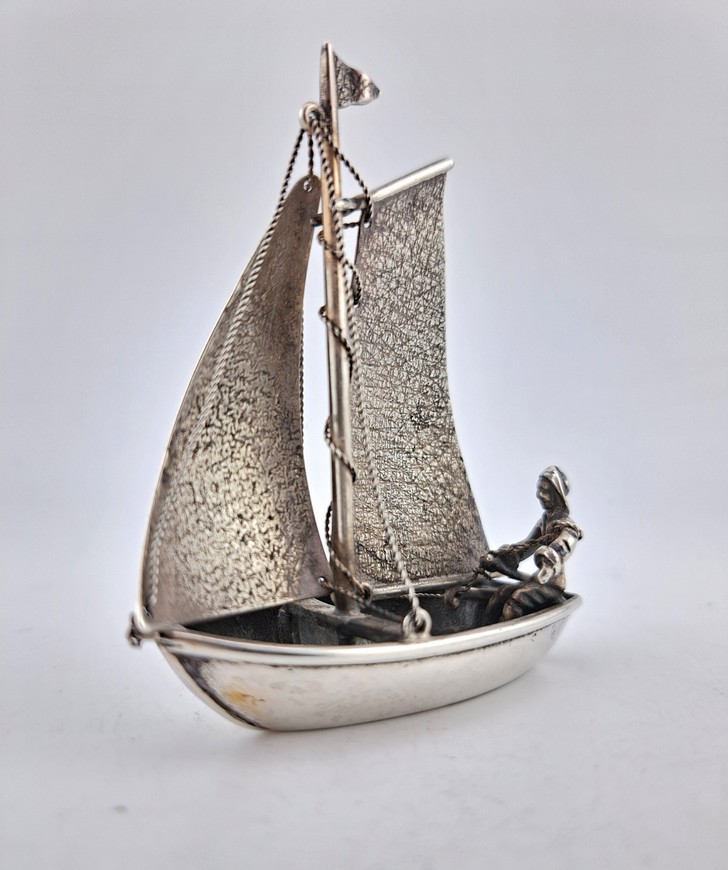 Zeilbootje, miniatuur zilver, 20e eeuw.