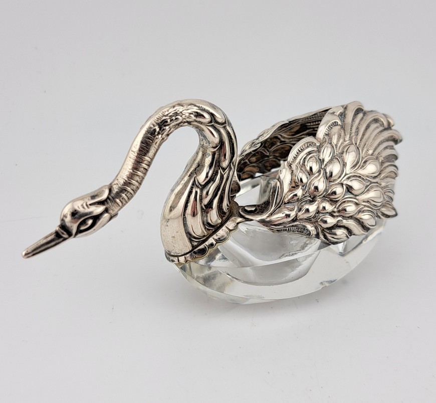Zwaan peper & zoutbakje, kristal met zilver, 20e eeuw.